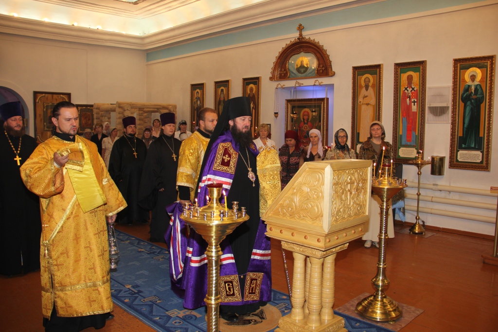 Преосвященный епископ Усть-Каменогорский и Семипалатинский Амфилохий возглавил служение Божественной Литургии в Богородице-Рождественском храме поселка Аблакетка. Владыке сослужили: архимандрит Спиридон (Теплухин), настоятель храма иерей Евгений Яганов, клирик Карагандинской епархии иерей Александр Гатиев, иерей Роман Подрезов, иерей Константин Дьяков, протодиакон Андрей Дудник.
