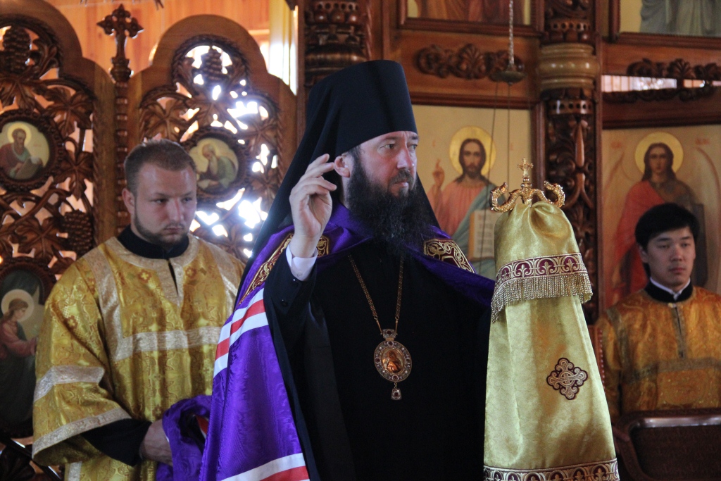 Преосвященный Амфилохий, епископ Усть-Каменогорский и Семипалатинский совершил Всенощное бдение в Свято-Андреевском кафедральном соборе и Божественную Литургию в Свято-Покровском храме города Усть-Каменогорска. Владыке епископу сослужили: архимандрит Спиридон (Теплухин), благочинный Усть-Каменогорского церковного округа, настоятель Покровского храма иерей Алексий Анищенко, иеромонах Иустин (Ларионов), иерей Роман Подрезов, протодиакон Андрей Дудник, диакон Александр Якушев, иеродиакон Мефодий (Шевчук).