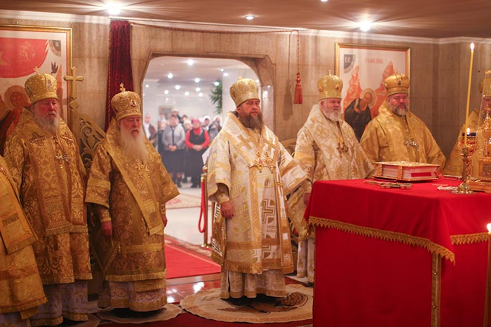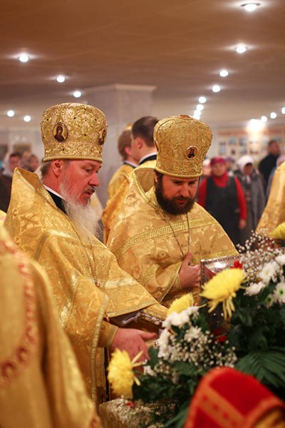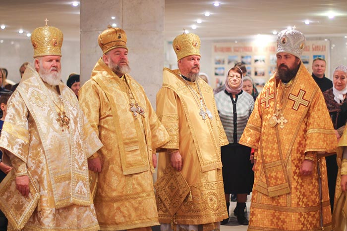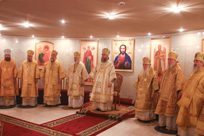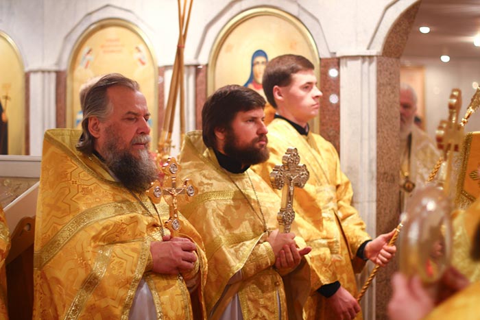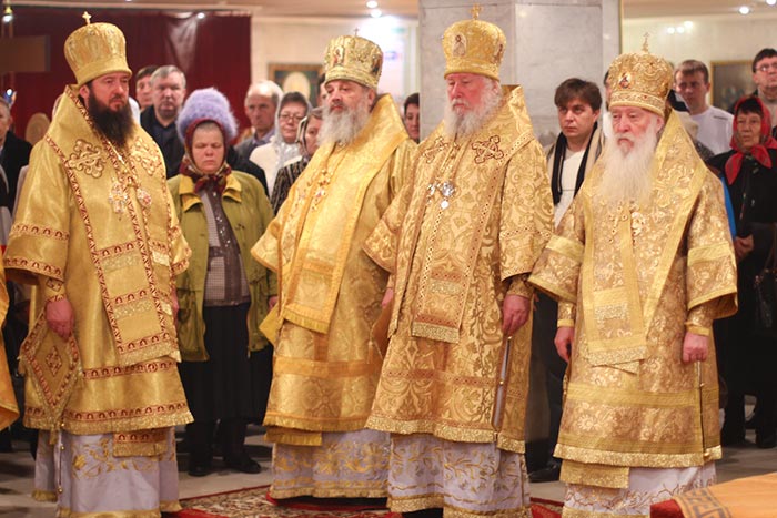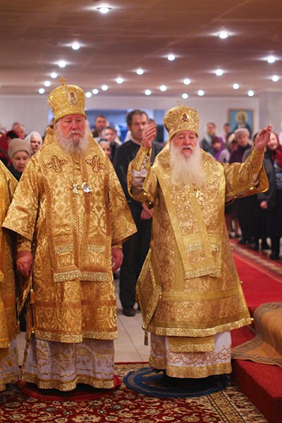 Главе Православной Церкви Казахстана сослужили: члены Синода Казахстанского Митрополичьего Округа - архиепископ Уральский и Актюбинский Антоний, архиепископ Чимкентский и Таразский Елевферий, епископ Петропавловский и Булаевский Гурий, епископ Костанайский и Рудненский Анатолий, епископ Павлодарский и Экибастузский Варнава, епископ Карагандинский и Шахтинский Севастиан, епископ Усть-Каменогорский и Семипалатинский Амфилохий, епископ Кокшетауский и Акмолинский Серапион; благочинный храмов Алма-Аты протоиерей Валерий Захаров; благочинный храмов Астаны архимандрит Сергий (Карамышев); благочинный Кокшетауского церковного округа протоиерей Василий Качанкин; настоятель храма в честь иконы Божией Матери «Всех скорбящих Радость» г.Алма-Аты протоиерей Евгений Воробьев; ключарь Успенского собора столицы протоиерей Димитрий Байдек; духовник астанайского женского монастыря в честь иконы Божией Матери «Взыскание погибших» иеромонах Модест (Дроздов); ключарь Константино-Еленинского собора Астаны иерей Сергий Калиев; руководитель протокола митрополита протодиакон Роман Головин; клирик Свято-Никольского собора города Алма-Аты протодиакон Георгий Засыпкин; соборное духовенство.
