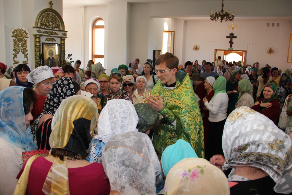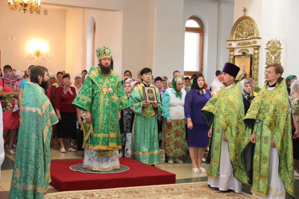 Праздник наш усиливается тем, что сегодняшний день является престольным торжеством Свято-Троицкого крепостного храма Усть-Каменогорска. Того храма, с которого начинался наш город. Того храма, алтарь которого является историческим и духовным центром города в устье Каменных гор. Того храма, который дал имя нынешней святой обители, располагающейся на месте крепости. Того храма, в котором служили Богу святые новомученики. Того храма, который ныне переживает времена обновления. Восстановление исторического облика Свято-Троицкого храма – дань исторической справедливости и все мы верим и знаем, и ждем, что в скором времени увидим храм таким, каким его видели наши благочестивые предки. Созидая церковные стены мы вместе с тем возводим и стены нашей души, укрепляя и обновляя ее Святым Духом, Которому вся вселенная и вся Церковь ныне воспевает святую и хвалебную песнь».