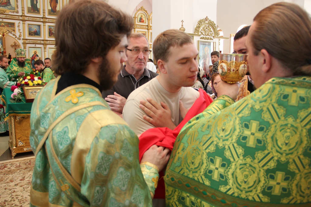 «Царю Небесный, Утешителю, Душе Истины, прииди и вселися в ны! Вся Церковь, каждая христианская душа сегодня объята особым, священным трепетом от осознания того, что Утешитель, обещанный Спасителем (Ин. 15:26), ныне находится среди нас. И не просто находится и присутствует, как незнакомец, которому безразличны наши скорби и страсти, а присутствует как Утешитель, животворя и обновляя каждое христианское сердце. Мы сегодня соборно молились о сугубой благодати Духа, едиными устами и единым сердцем воспевали гимн Святому и Животворящему Духу. И Господь сегодня, как и две тысячи лет назад, явил из нас, разрозненных, пораженных грехами и немощных единое Тело Христово, сотворил нас Церковью (1 Кор. 12:27, Рим. 12:5). Праздник Троицы считается днем рождения Церкви, потому что в этот день, почти две тысячи лет назад, в сионской горнице на апостолов и Деву Марию сошел Святой Дух, и произошло это на пятидесятый день после Воскресения Христа и на десятый – после Его Вознесения на Небо. Так малое сообщество апостолов стало Церковью, чадами которой сегодня являемся мы с вами. Вспомним, каким видимым образом Господь явил ученикам Свой дар: «И явились им разделяющиеся языки, как бы огненные, и почили по одному на каждом из них. И исполнились все Духа Святаго» (Деян.2: 3-4). В наши дни Господь так же являет Своим людям, носящим христианское имя, обильные дары Пресвятаго и Благаго и Животворящего Своего Духа. Будем знать, что сегодня Дух пришел к нам и почивает на нас, и содействует нам; сохраним этот бесценный дар, и в чистоте сердца будем беречь и приумножать его.