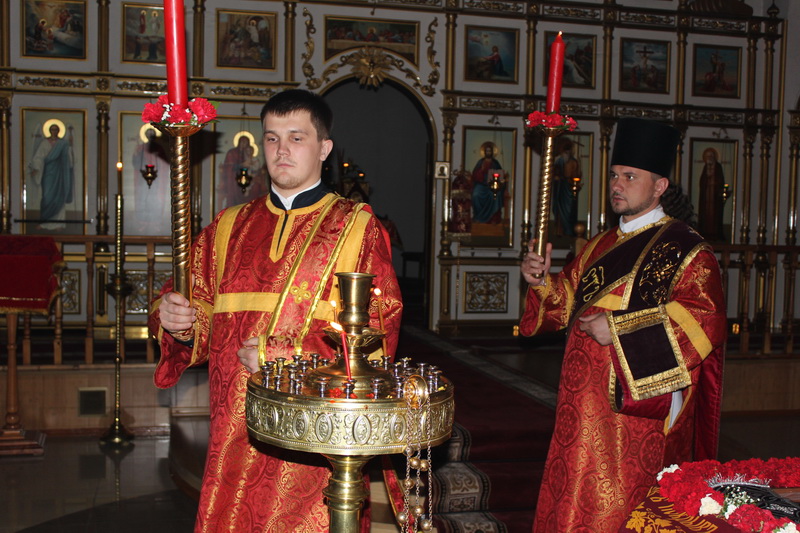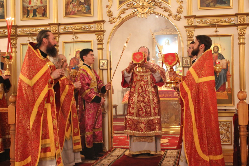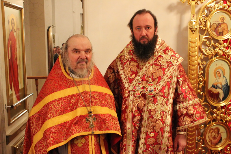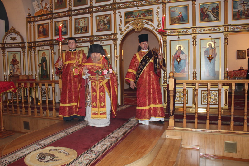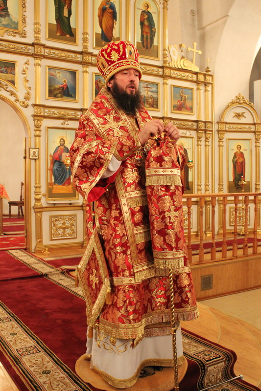 Архипастырю сослужили: ключарь Андреевского кафедрального собора иерей Иоанн Карабидович, клирики Свято-Троицкого мужского монастыря: игумен Спиридон (Теплухин), иеромонах Никодим (Авдеев), диакон Андрей Лебединский, а также клирик Вознесенского собора г.Алматы диакон Димитрий Савченко и клирик Воскресенского собора г.Семипалатинска диакон Андрей Дудник.