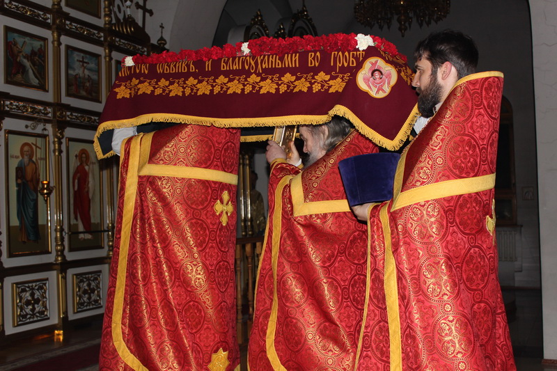 По традиции Пасхальное богослужение предваряется чтением Деяний святых апостолов, после чего следует полунощница с каноном Великой Субботы. При пении катавасии 9-й песни канона «Возстану бо и прославлюся» Плащаница была поднята священнослужителями и внесена в алтарь, где она будет пребывать на Святом Престоле до отдания праздника Святой Пасхи.