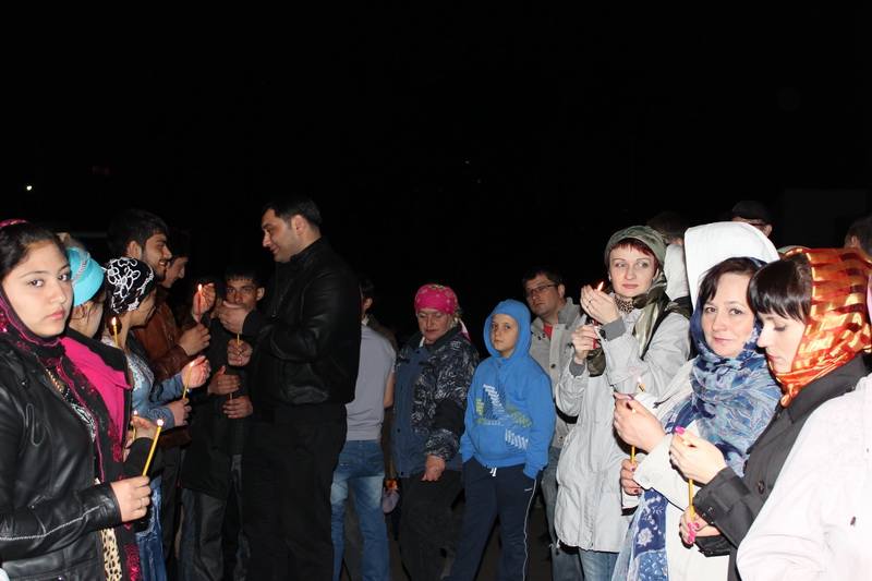 Под ликующий пасхальный трезвон, с пением стихиры: «Воскресение Твое, Христе Спасе, Ангели поют на небесех, и нас на земли сподоби чистым сердцем Тебе славити», - священнослужители вместе с народом, подобно женам-мироносицам, ходившим зело рано ко гробу, совершили вокруг Андреевского собора Крестный ход. Все молящиеся шли с возженными свечами, тем самым, выражая духовную радость Светоносного Праздника.