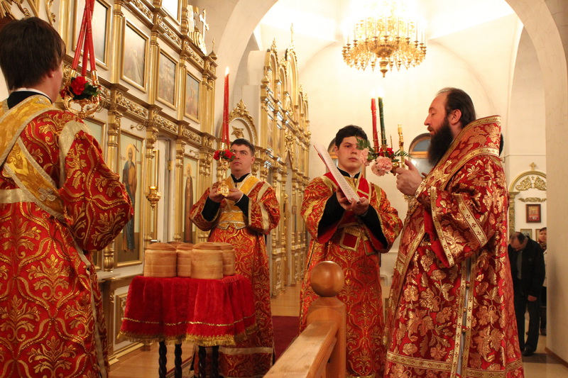 По заамвонной молитве Его Преосвященство епископ Амфилохий совершил освящение артоса. Артос – это особый святой хлеб с изображением Креста или Воскресения Христова, который хранится в храме до следующей субботы, а затем раздробляется и раздается верующим, как благодатная святыня.
