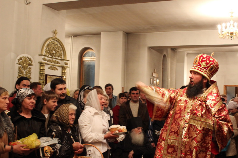 Затем епископ Амфилохий совершил освящение пасхальной снеди, принесенной с собой верующими, и преподал всем богомольцам свое благословение на труды и молитвы в этот великий праздник – Воскресения Христова.