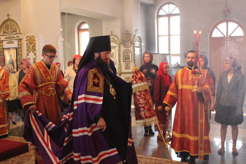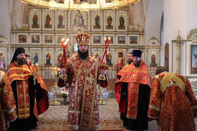 Архипастырю сослужили: настоятель Богородице-Рождественского храма, района Аблакетка, иерей Евгений Яганов, настоятель Покровского храма, района Мирный, иерей Алексий Анищенко, настоятель Герасимовского храма с.Герасимовка иерей Александр Закурдаев, настоятель Богородице-Рождественского храма пос.Асу-Булак иерей Роман Подрезов, ключарь Андреевского кафедрального собора иерей Иоанн Карабидович, клирики Свято-Троицкого мужского монастыря иеромонах Никодим (Авдеев) и диакон Андрей Лебединский, клирик Воскресенского собора г.Семипалатинска диакон Андрей Дудник и клирик Покровского храма г.Усть-Каменогорска диакон Александр Якушев.