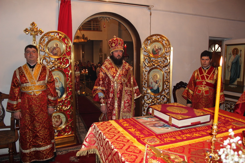 По окончании вечерни настоятель Богородице-Рождественского храма, района Аблакетка, священник Евгений Яганов от лица духовенства и мирян Усть-Каменогорской епархии поздравил Преосвященнейшего Амфилохия с праздником Светлого Христова Воскресения.