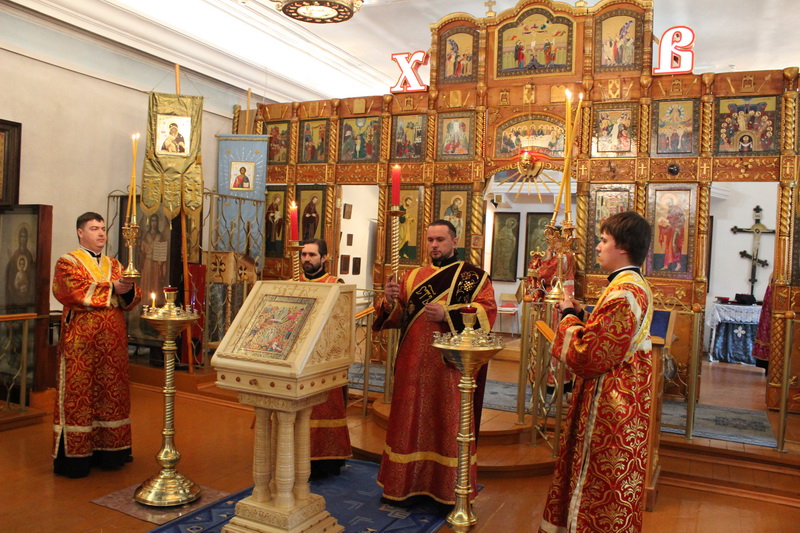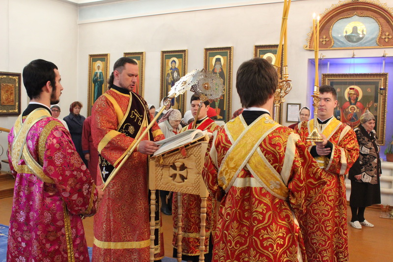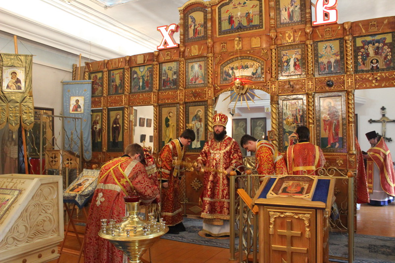 Его Преосвященству, епископу Амфилохию сослужили: настоятель Богородице-Рождественского храма, района Аблакетка, г.Усть-Каменогорска иерей Евгений Яганов, настоятель Богородице-Рождественского храма пос.Асу-Булак иерей Роман Подрезов, клирики Свято-Троицкого мужского монастыря: игумен Спиридон (Теплухин), иерей Николай Темирбаев, диакон Андрей Лебединский и клирик Воскресенского собора г.Семипалатинска диакон Андрей Дудник.