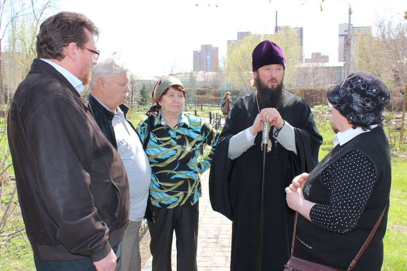 После трапезы, Преосвященнейший Владыка вместе с прибывшими потомками священомученика посетили в городском парке «Жастар» часовню во имя Новомучеников и Исповедников Российских, построенную в 2001 году в память разрушенного в годы безбожной власти Покровского собора, настоятелем которого почти 30 лет был протоиерей Александр Дагаев.