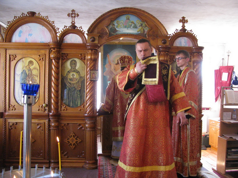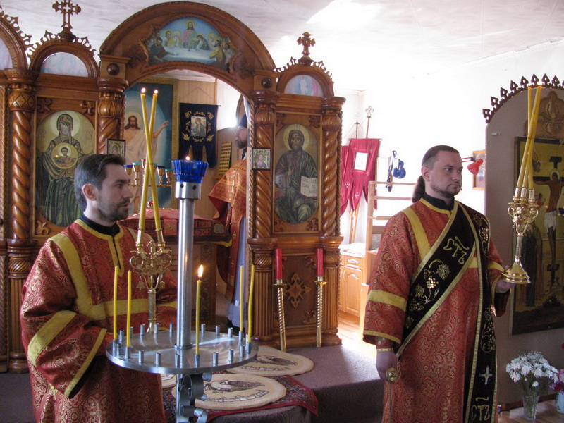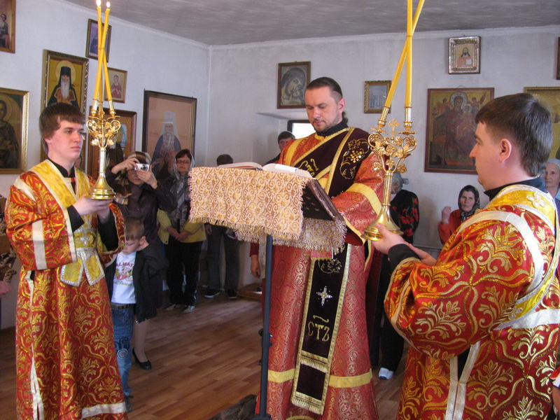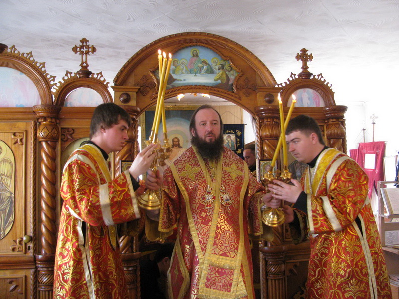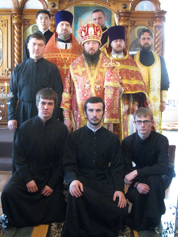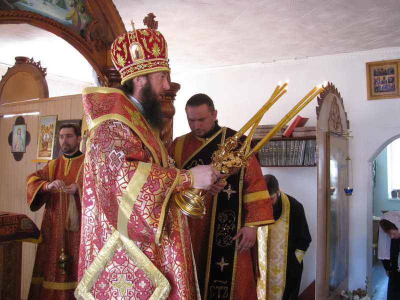Епископу Амфилохию сослужили: настоятель Трехсвятительского храма пос.Глубокое иерей Константин Акентьев, настоятель Покровского храма г.Усть-Каменогорска иерей Алексий Анищенко, ключарь Андреевского собора иерей Иоанн Карабидович, клирик Воскресенского собора г.Семипалатинска диакон Андрей Дудник и клирик Свято-Троицкого мужского монастыря г. Усть-Каменогорска диакон Андрей Лебединский.