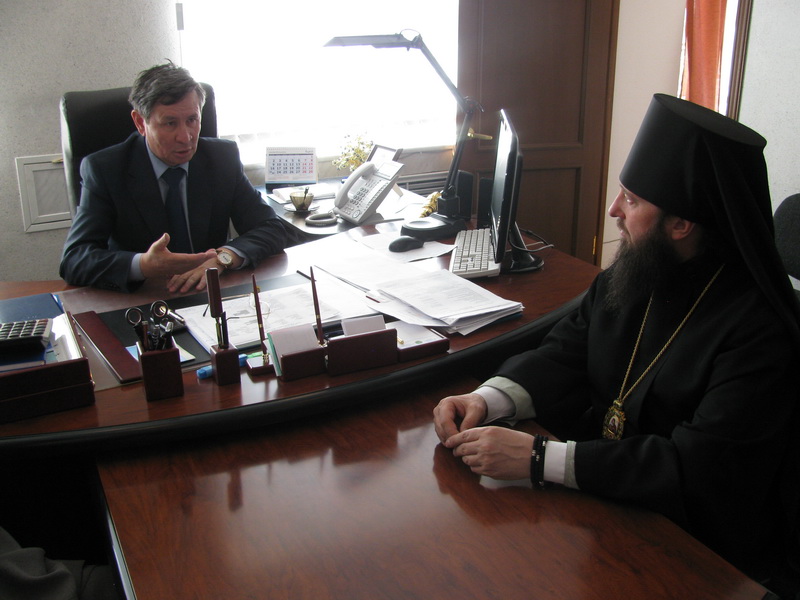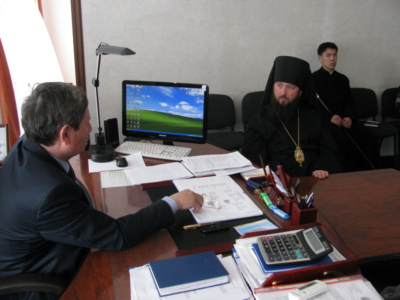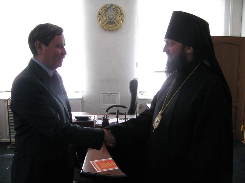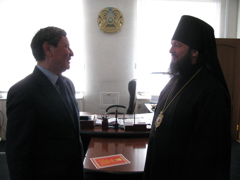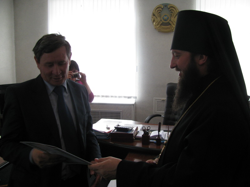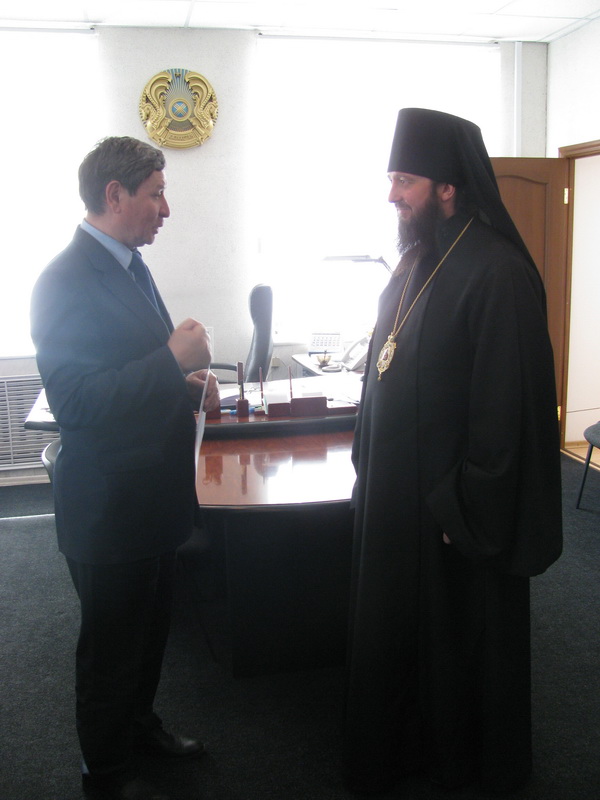 В этот же день, в 12 часов, Преосвященнейший Амфилохий, встретился с акимом Глубоковского района Нурлыбеком Адылгазиновичем Шерубаевым.