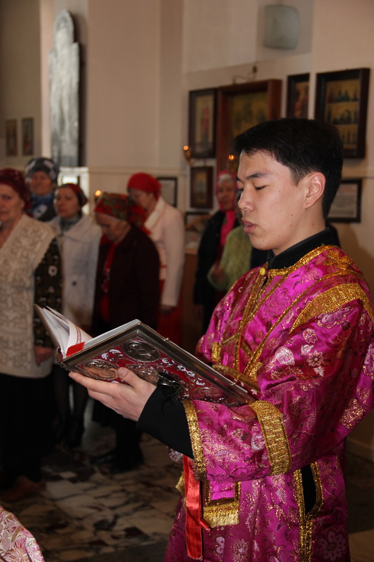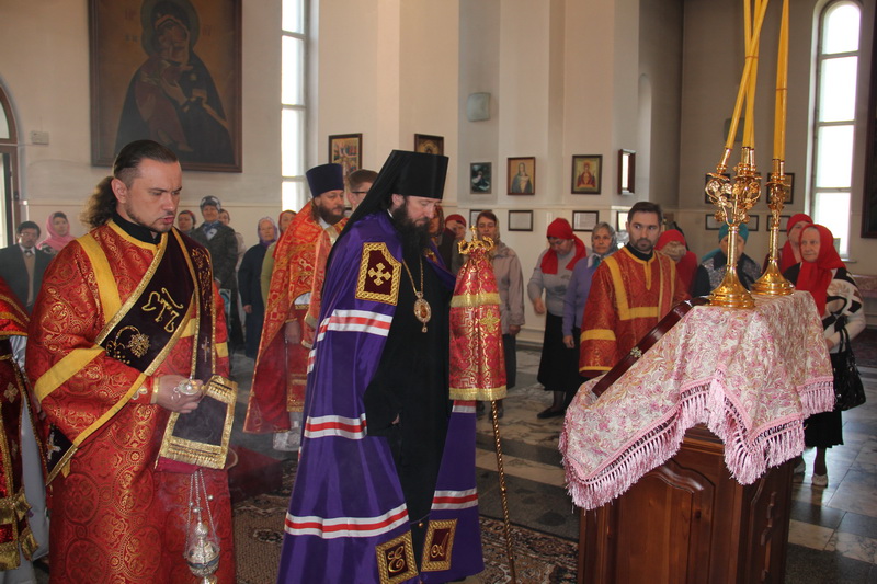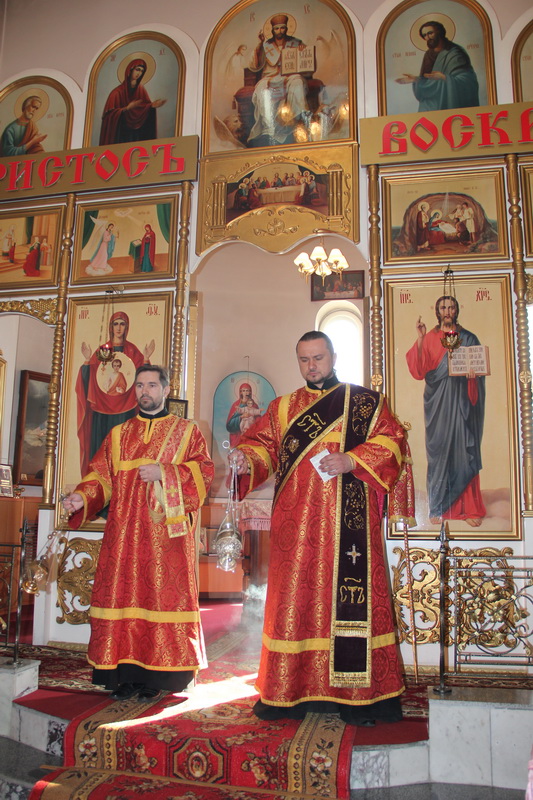 Преосвященнейшему епископу Амфилохию сослужили: настоятель Богородице-Рождественского храма района Аблакетка иерей Евгений Яганов, ключарь Андреевского собора иерей Иоанн Карабидович, клирики Свято-Троицкого мужского монастыря: игумен Спиридон (Теплухин), иерей Николай Темирбаев и диакон Андрей Лебединский, а также клирик Воскресенского собора г. Семипалатинска диакон Андрей Дудник.