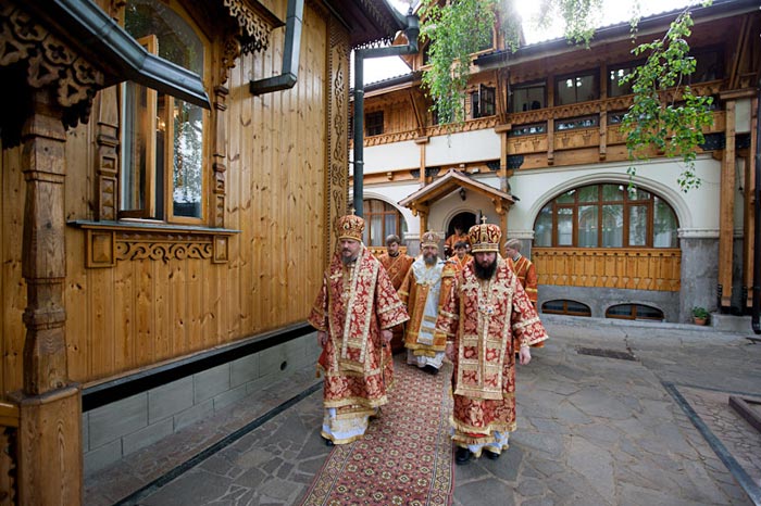 По окончании богослужения архипастыри, духовенство и верующие крестным ходом прошли на территорию Покровского храма, где Глава Митрополичьего Округа совершил освящение строительной площадки будущего храма в честь Собора Пресвятой Богородицы и возглавил молебен перед началом доброго дела.