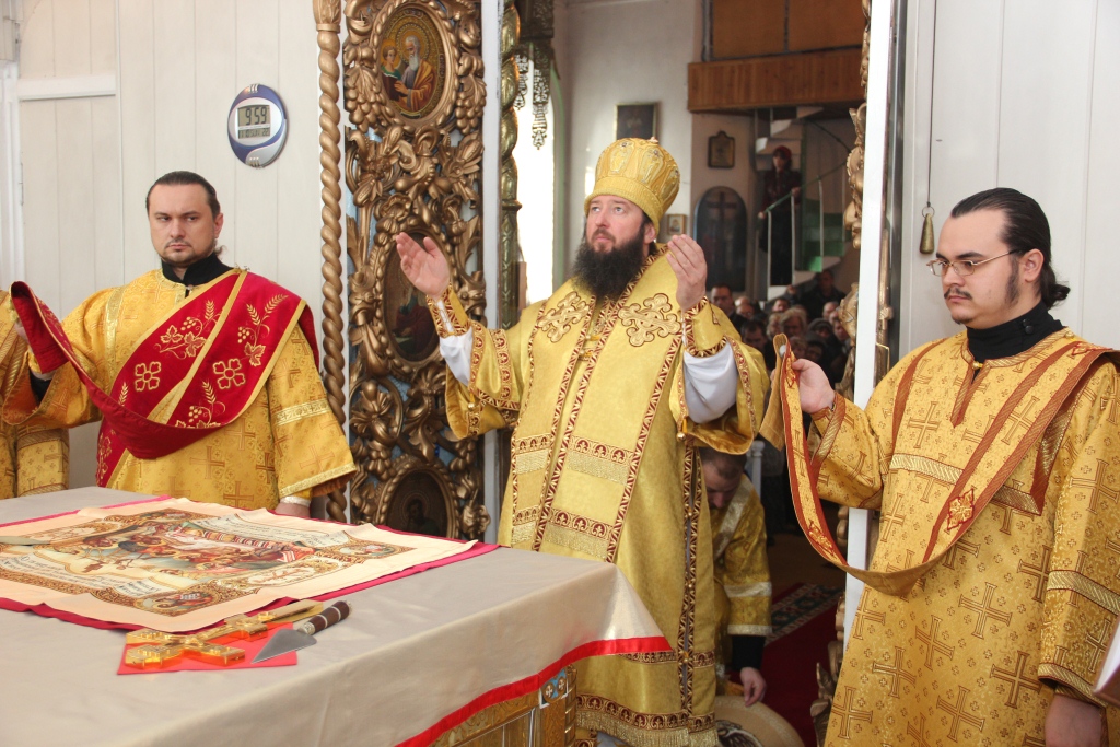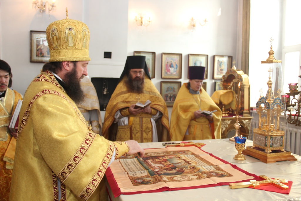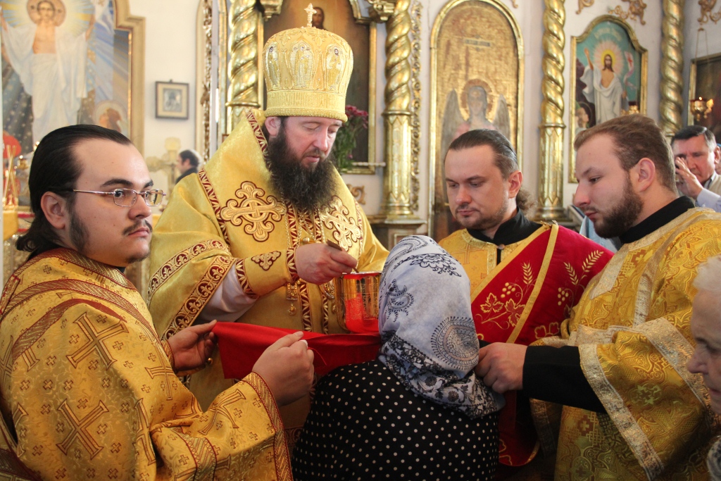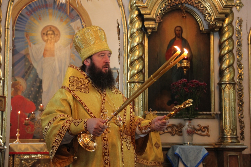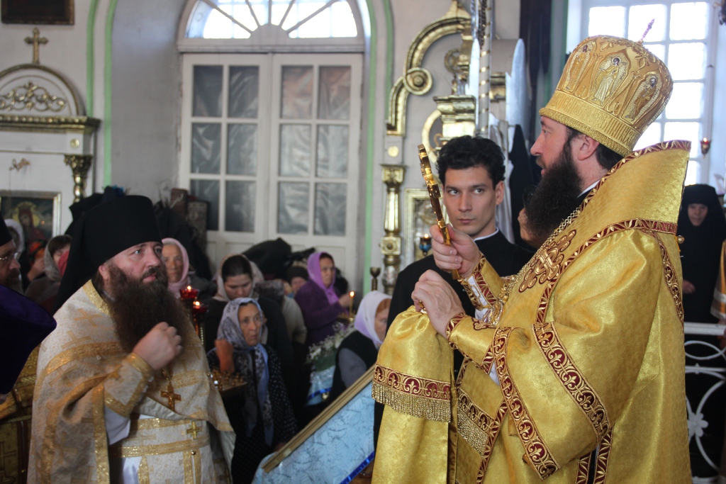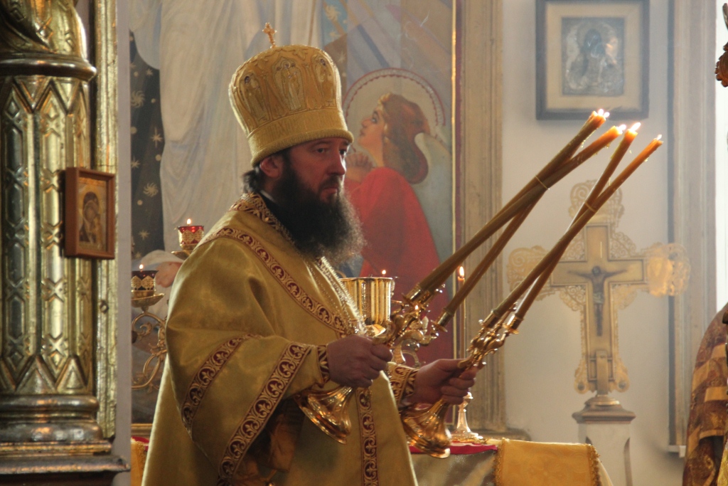 После отпуста Преосвященный Архипастырь поздравил сослужащее духовенство и многочисленных богомольцев с праздником воскресного дня, и обратился ко всем собравшимся со словами проповеди.