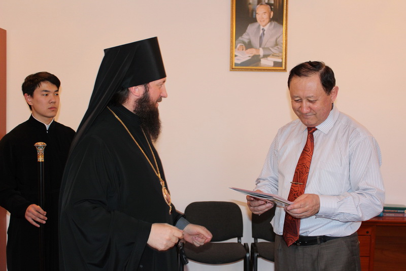 Владыка Амфилохий сердечно поздравил всех собравшихся с праздником Наурыз, а акима ВКО Бердыбека Машбековича Сапарбаева поздравил еще и с получением титула «Лучший аким года», который ему присвоили по результатам опроса газеты «Президент жане Халык», памятный сертификат был вручен в день празднования Наурыза на площади Республики.