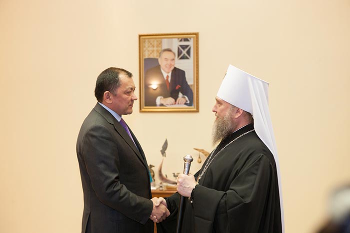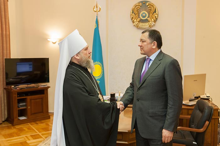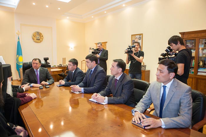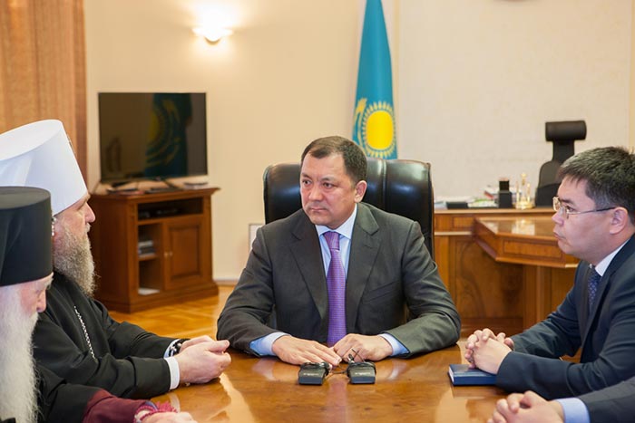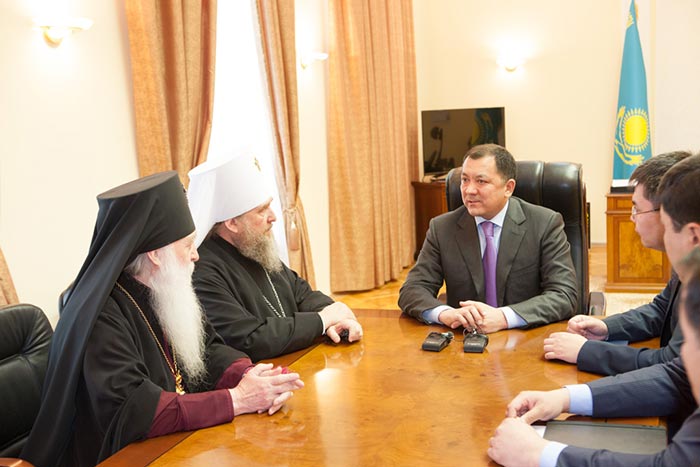 Митрополит Александр пригласил акима области посетить Успенский собор и новопостроенный Духовно-культурный центр имени равноапостольных Кирилла и Мефодия в Астане.