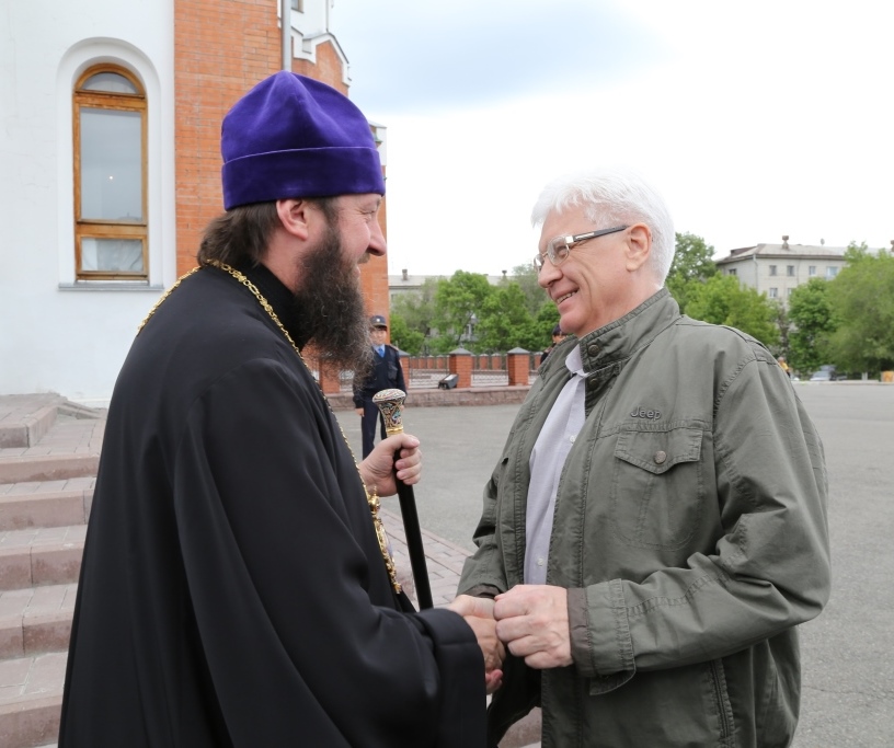 Дипломатов встречал Преосвященнейший епископ Усть-Каменогорский и Семипалатинский Амфилохий и духовенство кафедрального собора.