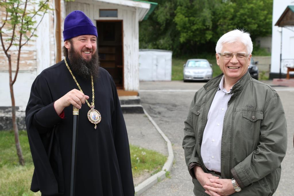 По прибытии в монастырь высокие гости посетили кафедральный собор во имя святого апостола Андрея Первозванного, где господин Посол приложился к мощам апостола Андрея и возжег свечи. Далее епископ Амфилохий ознакомил высоких гостей с процессом восстановления старейшего храма православного Прииртышья – Свято-Троицкого крепостного собора. В ходе встречи епископ Амфилохий рассказал об истории Свято-Троицкого храма и этапах его реконструкции. В память о посещении владыка епископ подарил господину послу книги об истории Троицкого собора.