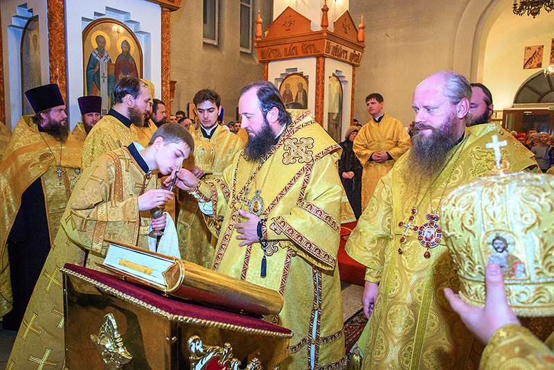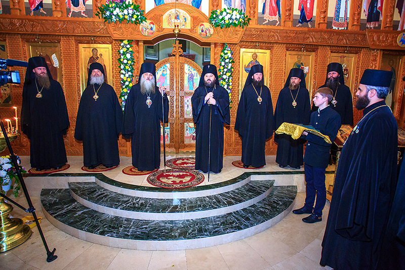 По окончании вечернего Богослужения владыка Ионафан поблагодарил епископа Сергия за приглашение на юбилейные торжества и поздравил всех собравшихся в храме с праздником.