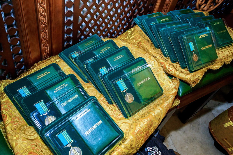 За богослужением ряд клириков и мирян были награждены медалями преподобного Сергия Радонежского и святителя Макария Алтайского.