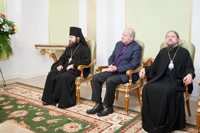 Общение митрополита Александра и Сергея Евгеньевича продолжилось в каминном зале духовно-культурного центра. Архипастырь рассказал Председателю Государственной Думы Российской Федерации о жизни Православной Церкви в Казахстане, и, в частности, о духовно-просветительских мероприятиях, которые состоялись в рамках празднования 700-летия со дня рождения преподобного Сергия Радонежского.
