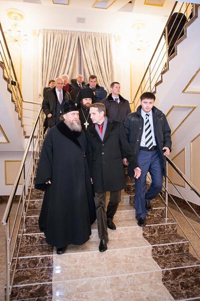 Глава Митрополичьего округа показал Спикеру Госдумы России духовно-культурный и административный центр Православной Церкви Казахстана имени равноапостольных Кирилла и Мефодия. Гости осмотрели домовый храм в честь Астанайской-Почаевской иконы Божией Матери, зал церковных собраний, зал заседаний Синода Митрополичьего округа, аудитории для занятий воскресной школы и помещения музейных экспозиций.