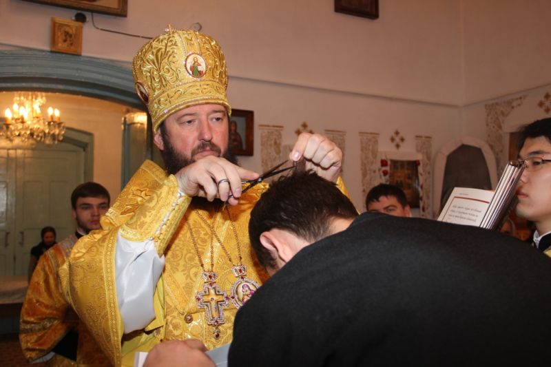 24 ноября, в первый день своего Архипастырского визита в Семипалатинское благочиние, Преосвященнейший Амфилохий, епископ Усть-Каменогорский и Семипалатинский совершил Божественную Литургию в Петропавловско-Знаменском женском монастыре. Преосвященному владыке сослужили: благочинный Семипалатинского церковного округа митрофорный протоиерей Феодор Проскурин, духовник монастыря игумен Аникита (Макаров), иеромонах Агапит (Никонов), благочинный Усть-Каменогорского церковного округа иерей Алексий Анищенко, настоятель Свято-Зиновьевского храма г.Усть-Каменогорска иерей Вячеслав Гутов, диакон Андрей Дудник, диакон Константин Дьяков. За богослужением молилась настоятельница Петропавловско-Знаменского женского монастыря монахиня Паисия (Сорокун) с сестрами обители. Перед началом Божественной Литургии владыка Амфилохий совершил хиротесию во чтеца и иподиакона прихожанина Спасо-Воскресенского собора и выпускника Омского духовного училища Евгения Потылицына.