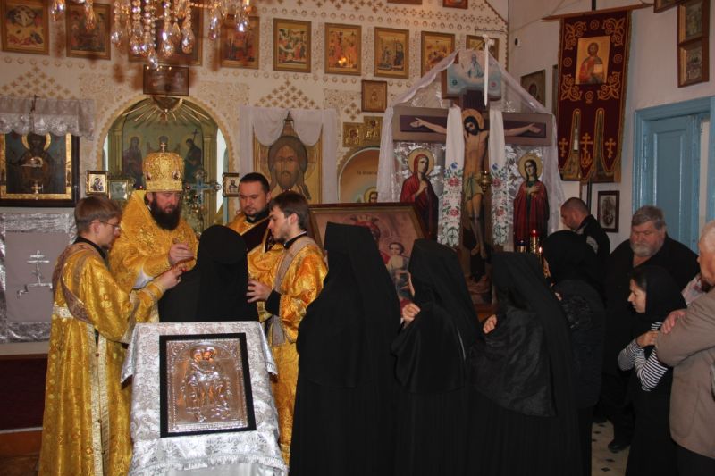 После Божественной Литургии Архипастырь посетил настоятельницу Петропавловско-Знаменского женского монастыря монахиню Паисию (Сорокун).