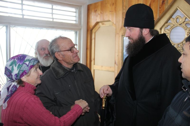 Во второй половине дня владыка в сопровождении духовенства посетил село Бескарагай (Большая Владимировка). В ходе рабочего визита обсуждался ряд вопросов с представителями государственной власти, общественности и жителями села. На встрече присутствовали: представитель сельского акимата Слоницкий Юрий Алексеевич, помощник акима Казинский Владимир Михайлович, почетный гражданин Бескарагайского района и староста прихода Тарасова Александра Дмитриевна. В ходе беседы с прихожанами на рассмотрение владыки был вынесен ряд вопросов, касающихся жизни и нужд прихода. В частности, приход очень нуждается в постоянном пастырском окормлении и назначении постоянного священнослужителя, в ответ на просьбу верующих владыка пообещал рассмотреть данный вопрос в ближайшее время и направить в Бескарагай священника. Затем владыка в сопровождении духовенства направился в село Канонерка, где также была организована встреча с настоятелем храма иереем Петром Хониным и прихожанами.