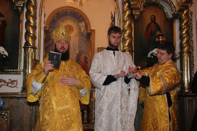 В воскресенье, 25 ноября, Преосвященнейший Амфилохий, епископ Усть-Каменогорский и Семипалатинский возглавил Божественную Литургию в Спасо-Воскресенском кафедральном соборе г. Семипалатинска. Архипастырю сослужили: благочинный Семипалатинского церковного округа митрофорный протоиерей Федор Проскурин, протоиерей Михаил Безродний, игумен Аникита (Макаров), иеромонах Агапит (Никонов), благочинный Усть-Каменогорского церковного округа иерей Алексий Анищенко, настоятель Свято-Зиновьевского храма г. Усть-Каменогорска иерей Вячеслав Гутов, диакон Андрей Дудник, диакон Евгений Хохряков, диакон Константин Дьяков. За Божественной Литургией была совершена диаконская хиротония иподиакона Евгения Потылицына.