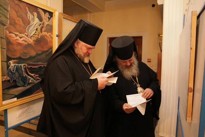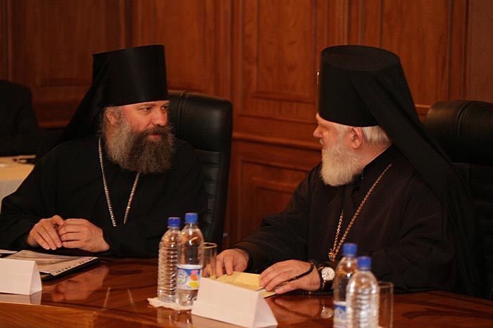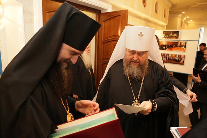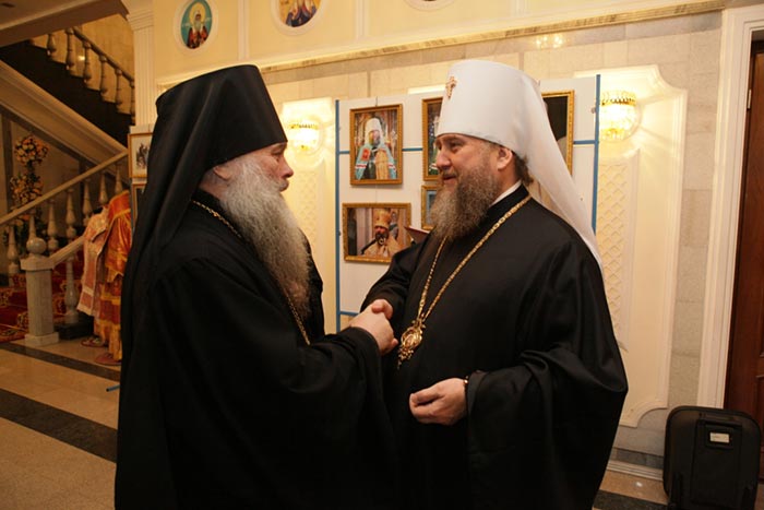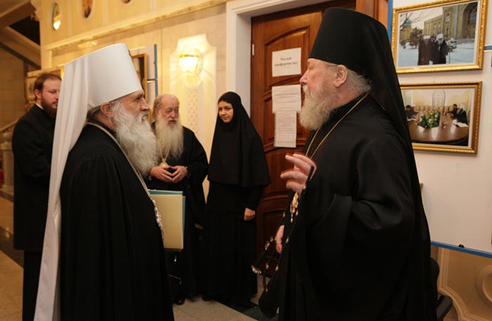 После общей молитвы митрополит Александр и митрополит Викентий обратились к иерархам со словами приветствия.