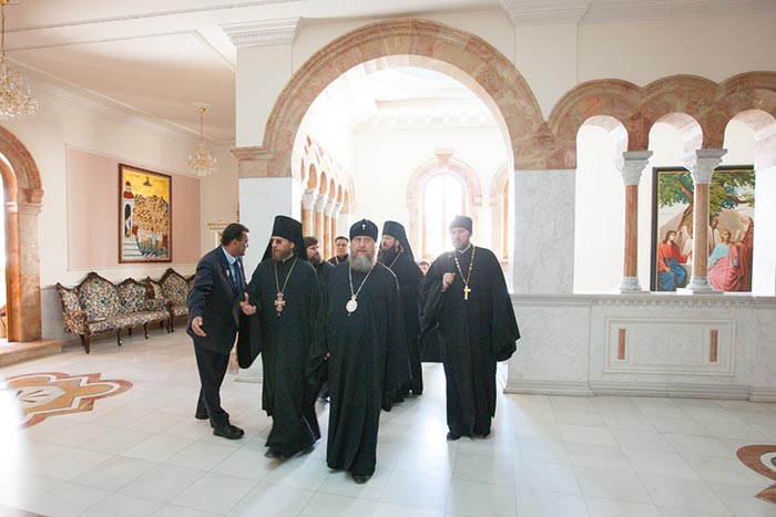 Приветствуя Предстоятеля Иерусалимской Православной Церкви, Глава Казахстанского Митрополичьего округа произнес: «Ваше Блаженство, Блаженнейший владыка! В эти светлые пасхальные дни, с великой радостью делегация иерархов, священнослужителей, монашествующих и мирян Казахстанского Митрополичьего округа, являющегося частью Русской Православной Церкви, посещает по благословению Святейшего Патриарха Московского и всея Руси Кирилла Святую Землю. Все мы прибыли сюда, движимые сердечным желанием поклониться живоносному Гробу Господню и своими очами увидеть ярчайшее свидетельство Воскресения Христова – опустевший смертный одр Спасителя.