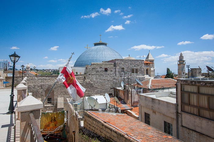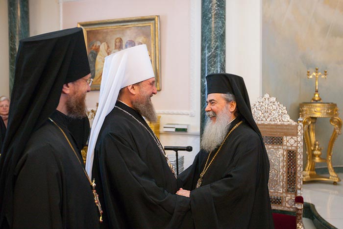 Во встрече с Патриархом Феофилом III принял участие игумен Феофан (Лукьянов), временно исполняющий обязанности начальника Русской Духовной Миссии в Иерусалиме.