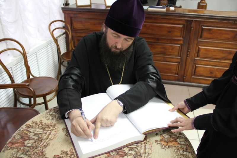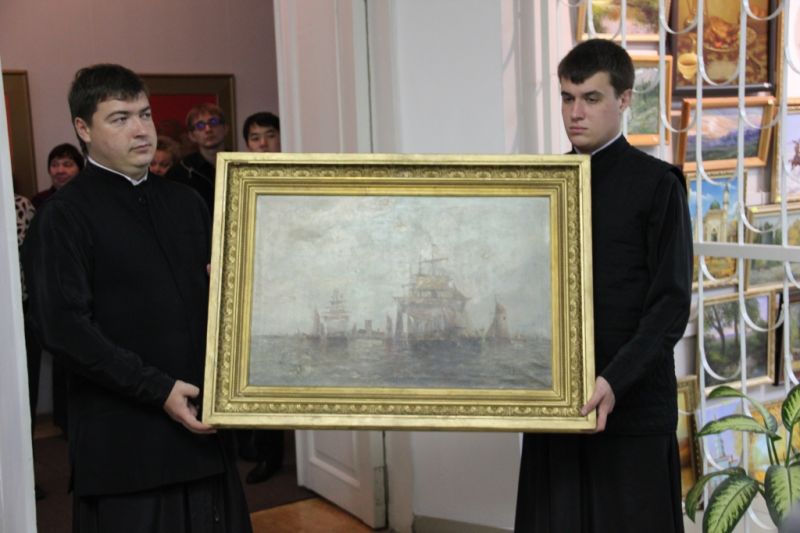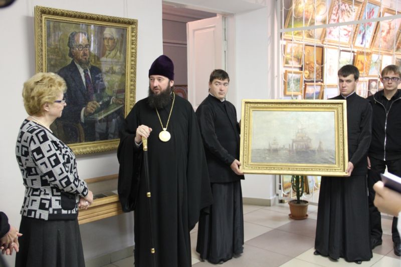 Во второй половине дня Преосвященный Владыка с братией посетил Семипалатинский Музей изобразительных искусств имени семьи Невзоровых, где преподнес в дар музею и городу Семипалатинску картину художника голландской живописной школы первой половины ХIХ века. Директор музея Стромская Татьяна Александровна и сотрудники поблагодарили Преосвященного Владыку за ценный дар, который в скором времени займет свое место среди экспонатов. Так же Владыка осмотрел выставку изделий русского народного промысла и встретился с представителями СМИ города Семипалатинска, которым дал интервью.