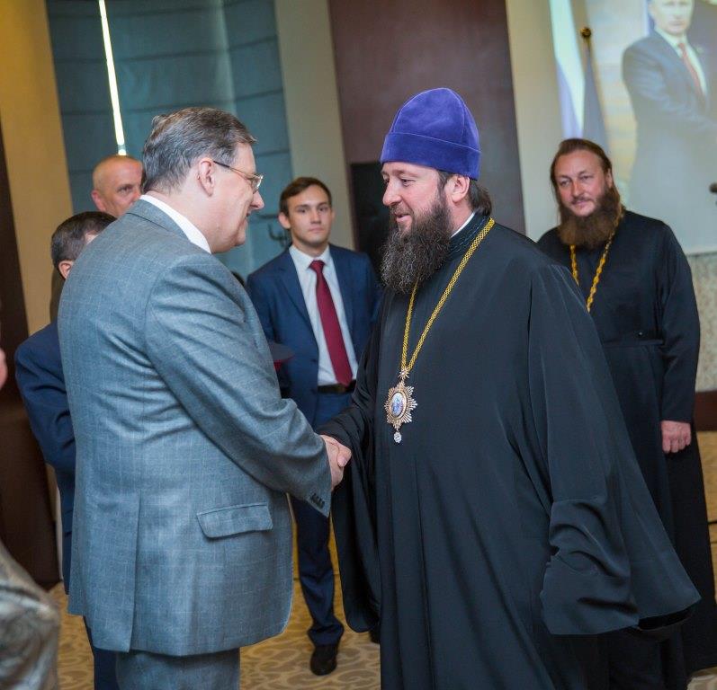 В торжественном мероприятии, по приглашению Генерального консула Российской Федерации в Усть-Каменогорске С.В. Анненкова, принял участие епископ Усть-Каменогорский и Семипалатинский Амфилохий, секретарь епархии священник Евгений Яганов, секретарь-референт Илья Кван.