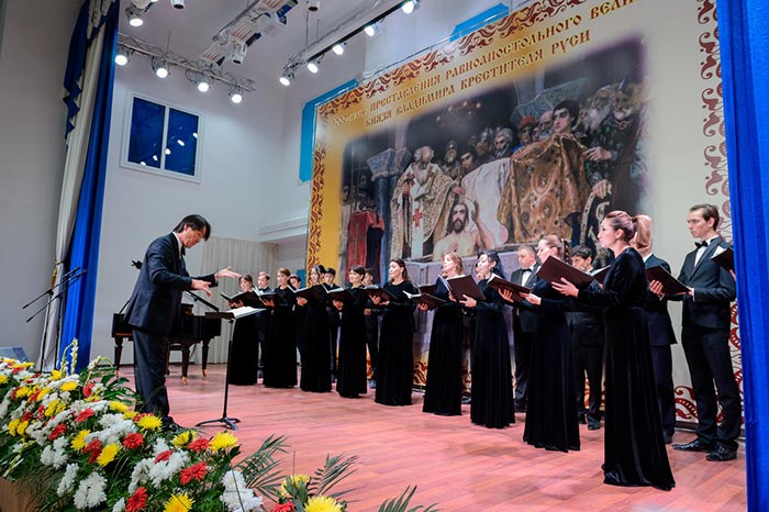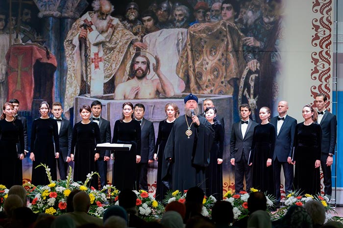 В числе приглашенных: Председатель Конституционного Совета Республики Казахстан И.И. Рогов, вице-министр культуры Республики Казахстан М.А. Азильханов, заместитель акима города Астаны Е.А. Аманшаев; Чрезвычайный и Полномочный посол Российской Федерации в Республике Казахстан М.Н. Бочарников, депутаты Сената и Мажилиса Парламента Республики Казахстан.Вечером, в рамках празднования памяти Крестителя Руси, в большом концертном зале духовно-культурного центра имени равноапостольных Кирилла и Мефодия состоялся благотворительный концерт. Перед гостями выступили хор Успенского кафедрального собора Астаны под управлением Ольги Варенцовой, камерный хор Константино-Еленинского собора под управлением Нины Мазуриной, вокальный квинтет «Джаз саунд», лауреат международных конкурсов баянистов-аккордеонистов, преподаватель Казахского национального университета искусств Константин Стригин, казачий хор «Станичники».Церковные хоры, светские коллективы и солисты исполнили произведения классических и современных авторов, духовные песнопения, славянские и казахские народные песни, оперные арии.В завершение концертной программы сводный хор участников исполнил тропарь и величание святому князю Владимиру. Прозвучало многолетие Предстоятелю Русской Православной Церкви с его богоспасаемою паствою, Главе и епископату Казахстанского Митрополичьего округа; Президенту, властям и народу Казахстана, и всем гостям праздника.Митрополит Александр поблагодарил организаторов и участников концерта, и обратился к присутствующим в зале со словом о значении личности Крестителя Руси в исторических судьбах стран Русского мира.