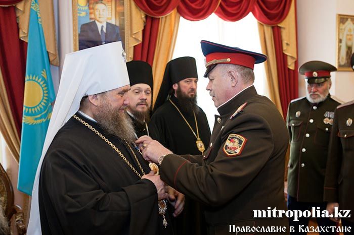В ходе встречи митрополиту Александру «за укрепление Веры Православной, мира и согласия на просторах Евразии, уважение и поддержку русской, казачьей и славянской культуры» была вручена награда Союза казачьих общественных объединений Казахстана – орден «Г.А. Колпаковский. 150-лет Победы под с. Узун-Агаш». Награждения орденом «Г.А. Колпаковский» был удостоен архиепископ Уральский и Гурьевский Антоний.
