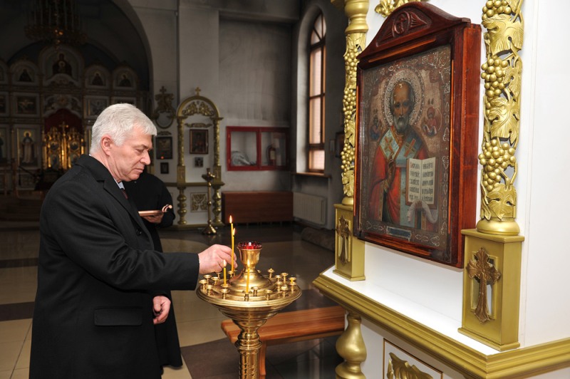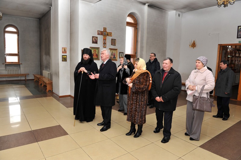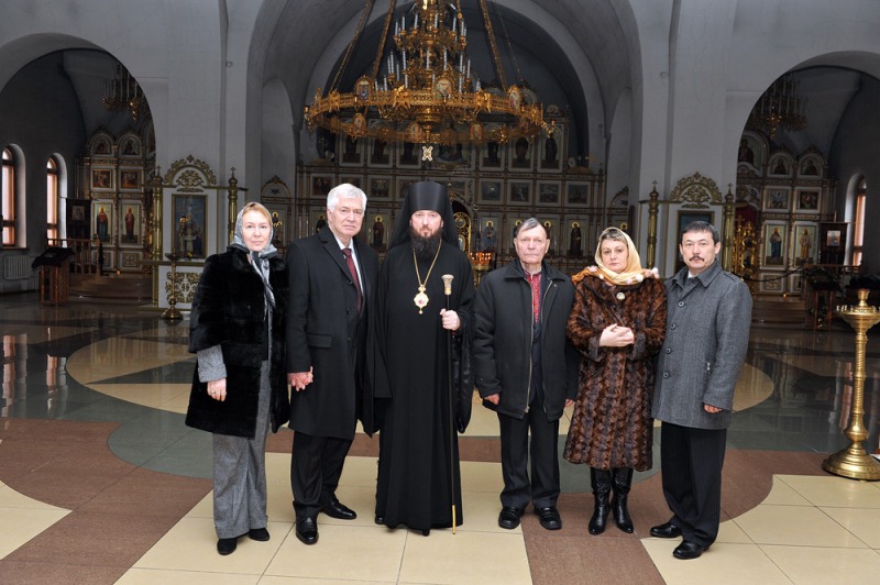 Владыка Амфилохий познакомил прибывших гостей с достопримечательностями Андреевского кафедрального собора, рассказал о старинных и наиболее почитаемых иконах. Из алтаря для молитвенного поклонения был вынесен ковчег с частицами святых мощей святых угодников Божиих: преподобного Сергия Радонежского, преподобного Серафима, Саровского чудотворца, святителя-исповедника Николая, митрополита Алма-Атинского, преподобномучеников Алма-Атинских Серафима и Феогноста, к которому гости смогли приложиться, помолиться и поставить свечи за здравие и упокоение своих близких.