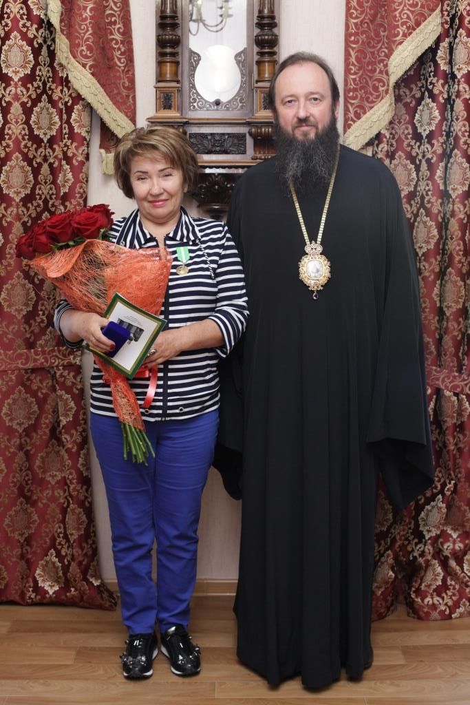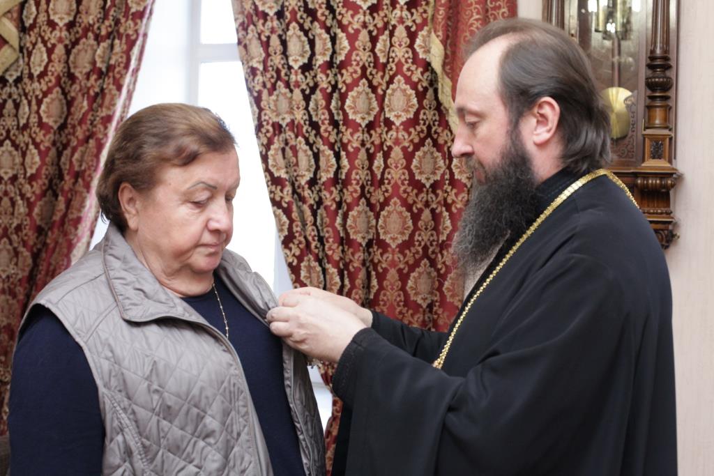 В заключении встречи епископ Амфилохий наградил Веру Николаевну Сухорукову по случаю памятной даты со дня рождения орденом «Преподобного Севастиана, старца Карагандинского», Цветкова Т. И., по случаю празднования юбилейной даты - 50-летия со дня преставления прп. Севастиана Карагандинского, удостоена одноименной медалью.
