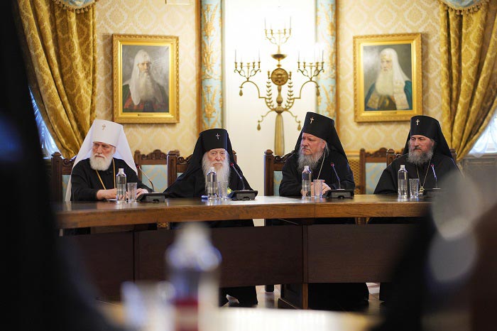Я хотел бы поблагодарить весь епископат нашего Митрополичьего округа в Казахстане за то, что Церковь наша очень достойно прошла через те трудности, о которых вы знаете лучше, чем я. Никто не смог ни в чем обвинить нашу Церковь, хотя желающих было много, и связать наш Казахстанский митрополичий округ, нашу Церковь в Казахстане с определенными политическими силами за рубежом. По милости Божией эти треволнения закончились, и Церковь наша не потерпела никакого урона, потому что была занята очень правильная позиция. Благодарю владыку митрополита и всех тех, кто трудится с ним, в первую очередь вас, мои дорогие братья. Радуюсь тому, что имел возможность каждого из вас возвести в сан архиепископа. Это соответствует нынешней нашей доктрине церковного устроения: каждый архиерей самостоятельной епархии, не входящей в митрополию, обретает титул архиепископа, что соответствует древним церковным традициям. И каждый из вас теперь архиепископ с определенными полномочиями, с определенным достоинством, которым сопровождается этот сан. Поэтому просил бы вас, братья, не жалея живота своего, служить Церкви Божией.