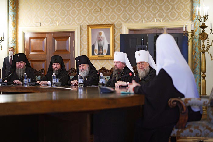 «Радуюсь возможности встретиться с архипастырями Казахстанского Митрополичьего округа. В условиях непростой общественно-политической ситуации, в которой сегодня находится весь мир и которая, конечно, касается Российской Федерации и всех стран, находящихся рядом с Россией, я думаю, что очень важными являются наши общие усилия, направленные на сохранение мира и согласия. Потому что враг рода человеческого часто действует не только на внешнем контуре, но и внутри, возбуждая человеческие аппетиты, недовольство тем, что есть.