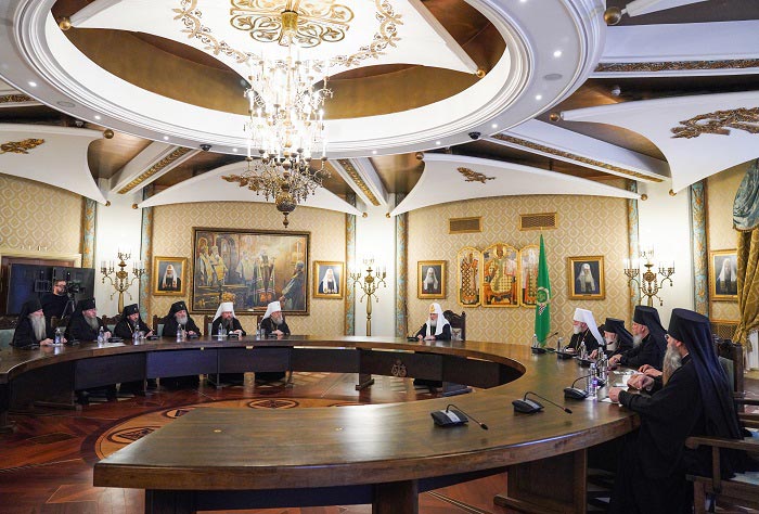 Святейший Патриарх Кирилл поблагодарил митрополита Александра и всех архипастырей за труды, которые они несут на Казахстанской земле, и обратился к ним со словом: