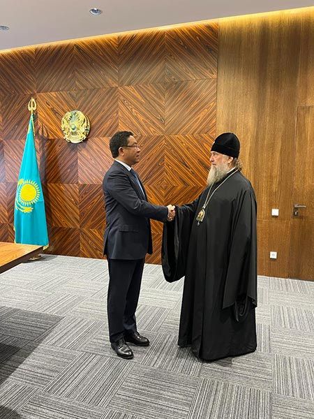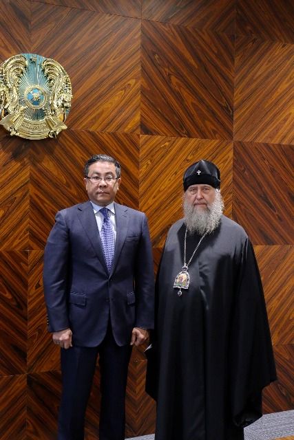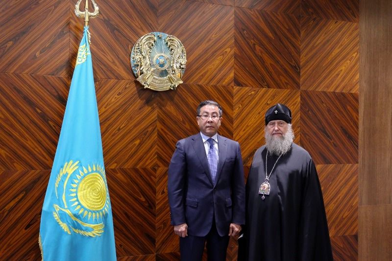 Митрополит Александр рассказал руководителю региона о жизни Православной Церкви Казахстана, для которой текущий год ознаменован исторической датой – 150-летием учреждения Туркестанской епархии. Иерарх подчеркнул, что в юбилейный год в Митрополичьем округе была образована новая епархия – Актюбинская и Кызылординская, открыто Талдыкорганское викариатство, рукоположены два архипастыря – епископ Актюбинский и Кызылординский Игнатий и епископ Талдыкорганский Кладвдиан, на Чимкентскую кафедру избран кандидат – архимандрит Хрисанф (Коноплев).