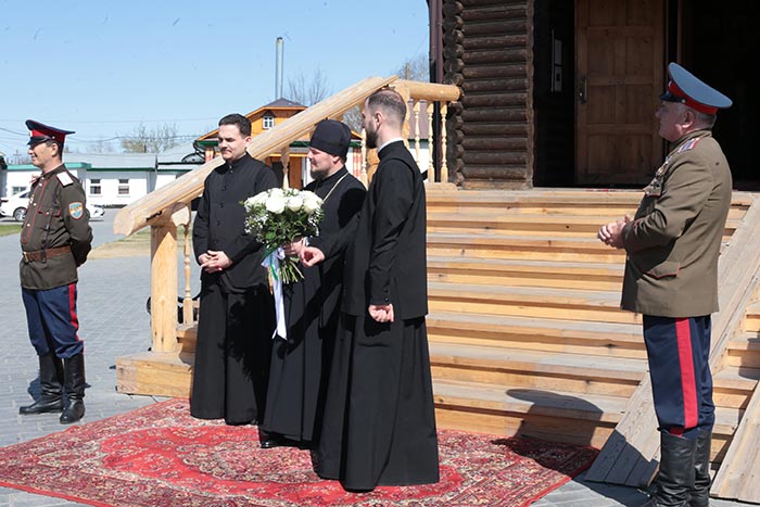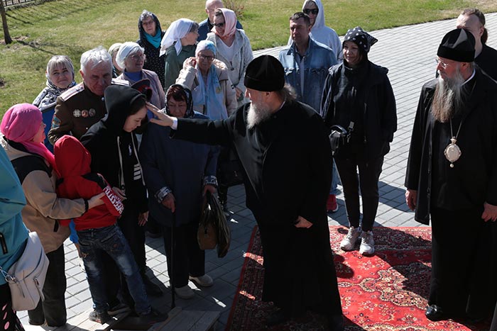 Главу Православной Церкви Казахстана сопровождали: архиепископ Усть-Каменогорский и Семипалатинский Амфилохий, викарий Астанайской епархии епископ Талдыкорганский Клавдиан, руководитель административного секретариата Главы Митрополичьего округа иерей Георгий Сидоров, секретарь Усть-Каменогорской епархии диакон Илия Кван, протодиакон Сергий Куликов, диакон Рустик Якупов; помощники митрополита И. Яценко, М. Калмыков и И. Михайлов.