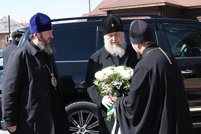 Владыку митрополита встречал настоятель собора иеромонах Силуан (Магилев).