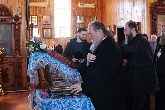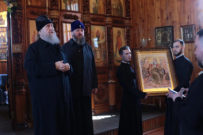 Митрополит Александр на молитвенную память передал храму икону пророка Божия Илии. Святыню из рук Главы Митрополичьего округа принял настоятель собора. Архиепископ Амфилохий и иеромонах Силуан (Магилев) сказали слова признательности за священный дар Предстоятелю Православной Церкви Казахстана.