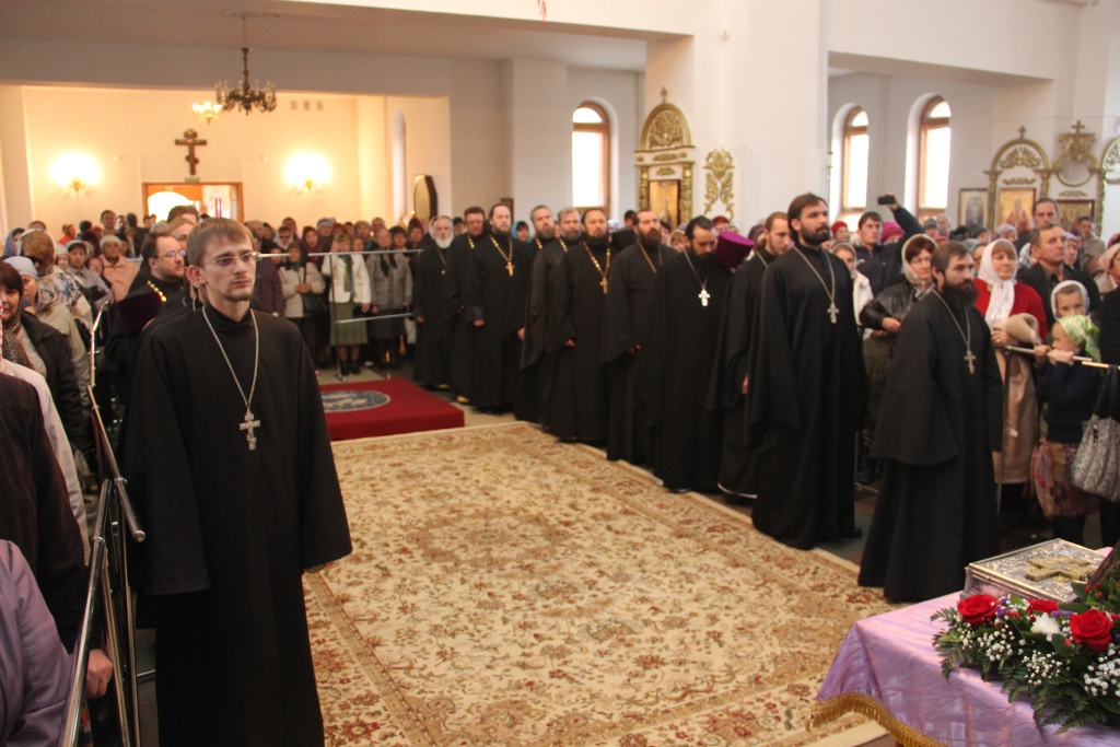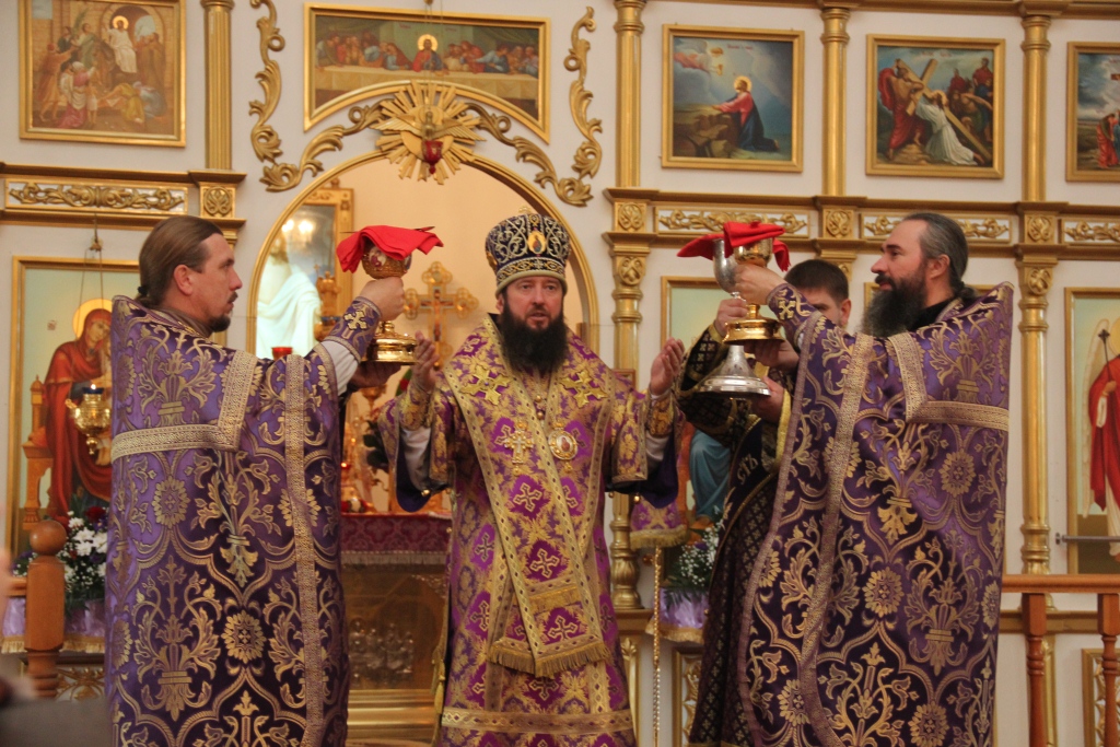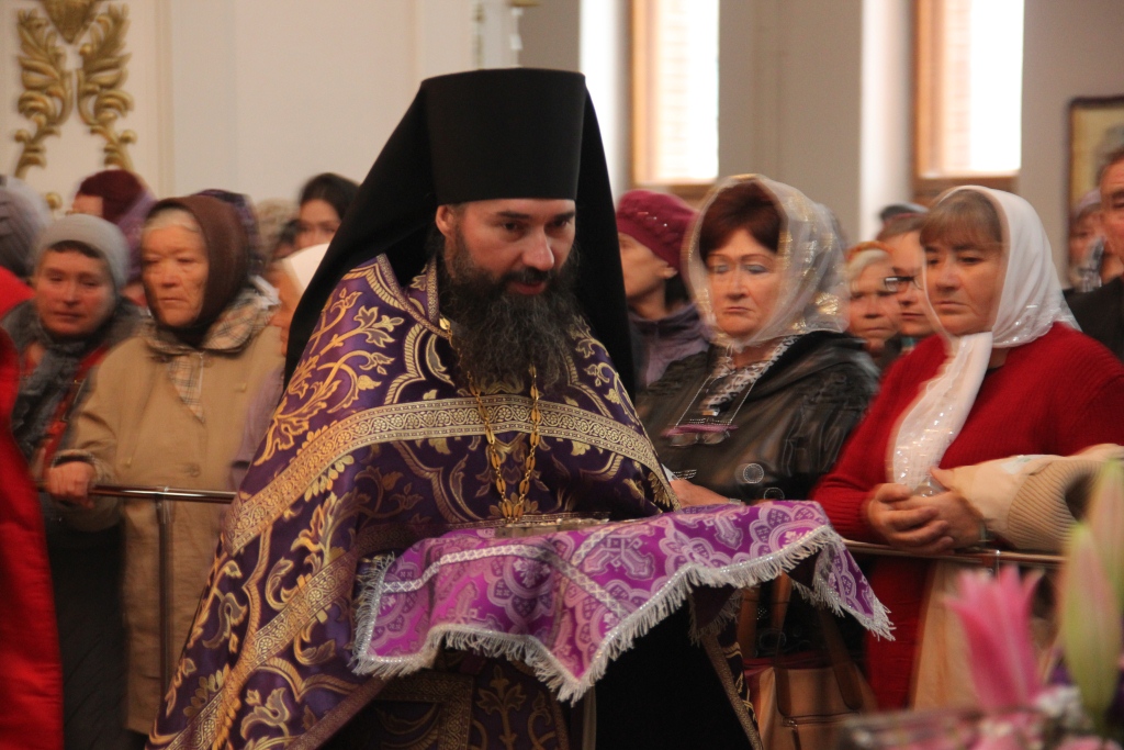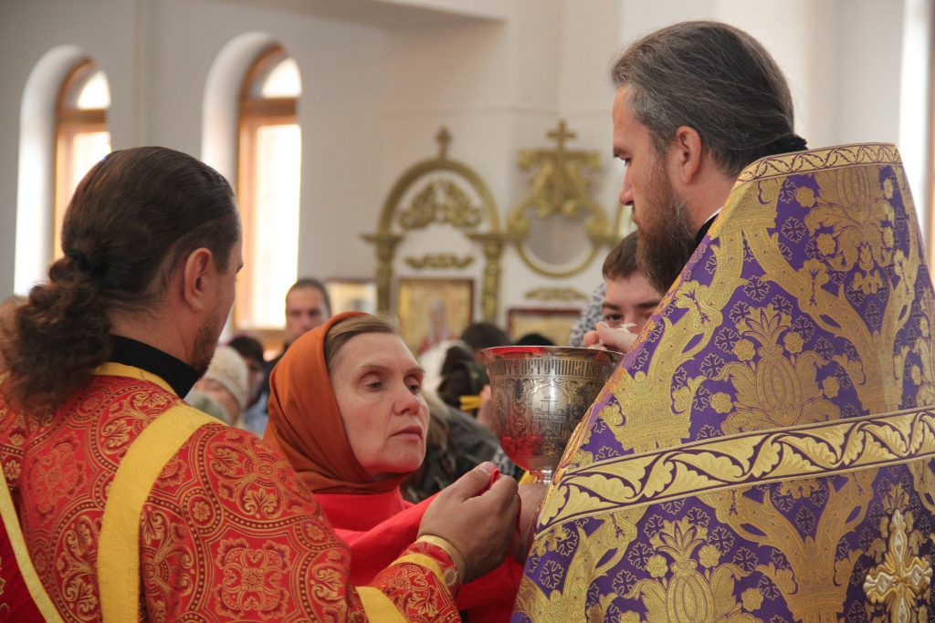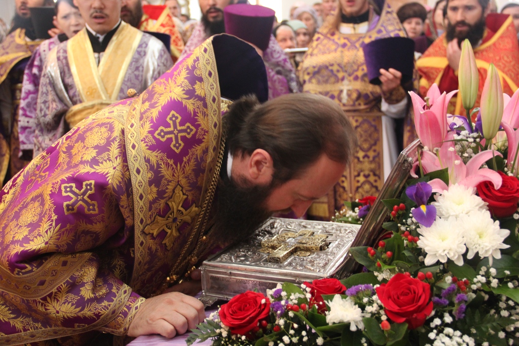 Как и в первый день пребывания в Усть-Каменогорске частицы Святого Креста, храм в субботний день был полон молящихся, среди них были не только жители кафедрального города, но и многочисленные паломники, которые съехались почтить Крест Христов почти со всех приходов Усть-Каменогорской епархии. В этот особенный и праздничный день Святых Христовых Таин приобщилось большое количество молящихся, духовенство причащало народ Божий из трех Потиров.