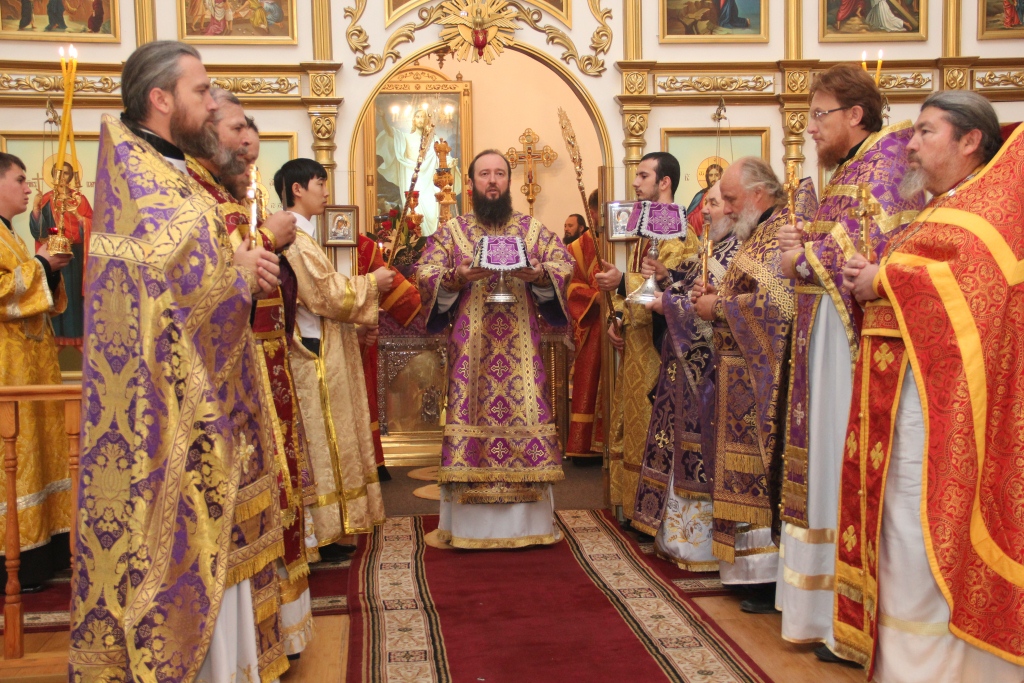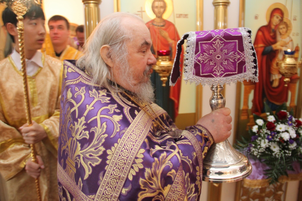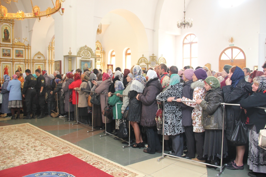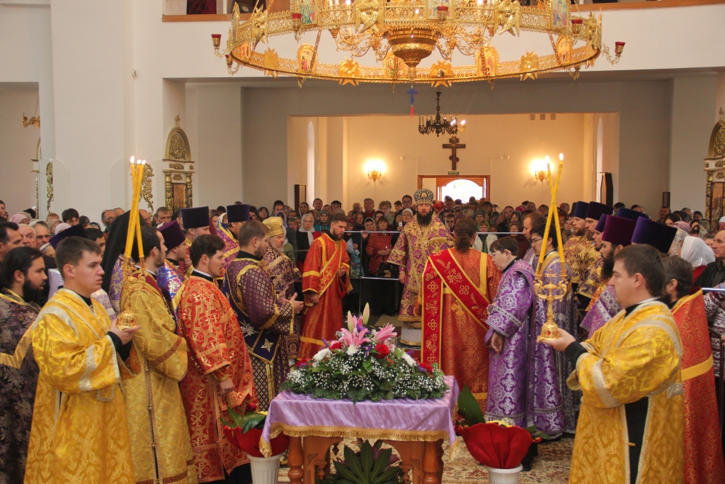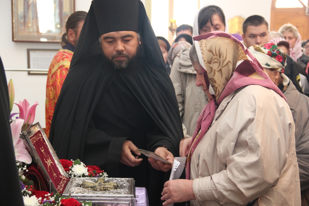 Как и в первый день пребывания в Усть-Каменогорске частицы Святого Креста, храм в субботний день был полон молящихся, среди них были не только жители кафедрального города, но и многочисленные паломники, которые съехались почтить Крест Христов почти со всех приходов Усть-Каменогорской епархии. В этот особенный и праздничный день Святых Христовых Таин приобщилось большое количество молящихся, духовенство причащало народ Божий из трех Потиров.