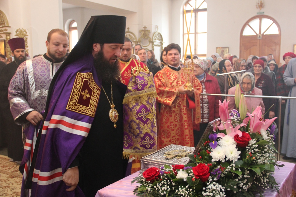 «Всемилостивый и Всещедрый Господь посетил сегодня наш город и наш храм через величайшую Святыню – Крест Свой, на котором был распят за грехи мира, и древо которого обагрил Своей Святой Кровью. Божественная Евхаристия, участниками которой все мы, по милости Божией, сегодня стали, явилась абсолютно особым Богослужением, ибо можно сказать, и слово наше будет истинным, что сегодня мы молились и причащались на горе Голгофе, у подножия Креста Христова. Мы молились, мы взирали на Распятого, славили и воспевали Его, и каждый, кто сегодня был в храме у сей Святыни, приобщился у тайне Божественной Любви. Ибо что это, если не любовь Господа к нам? Ради неописуемой и необъяснимой любви Великий и Вечный стал ограниченным во времени и пространстве человеком, жил, трудился, проповедовал, исцелял, и даже пошел на добровольную смерть для того, чтоб даровать человечеству истинную свободу, вырвать многогрешный и многострадальный человеческий род из власти греха и вечного осуждения. Господь восшел на Крест, и кровь Его, оросившая землю, не погибла, ибо на этом Божественном семени выросла Церковь Христова. С тех пор прошло две тысячи лет, но любовь Божия не иссякла. Подтверждением тому служит наш сегодняшний праздник. Радуйся, христианин, потому что сегодня ты видишь и лобызаешь главный символ своей спасительной веры! Призываю сегодня всех – поспеши приобщиться к любви Божией! Поспеши приклонить колени сердца пред Божественной Жертвой, поспеши сотворить молитву сегодня, ибо в этот день и в этот час Господь близок к тебе, настолько близок, что явил очам твоим Крест Свой, пропитанный Божественной Своей Кровью, которой все мы искуплены от порабощения врагу нашему. Покайся и сделай шаг навстречу Богу, ибо Он, распростерши пречистые руки Свои на Кресте, ждет тебя, человече, чтоб обнять и исцелить тебя любовью, которая никогда не иссякнет (ср. 1 Кор. 13: 8)».